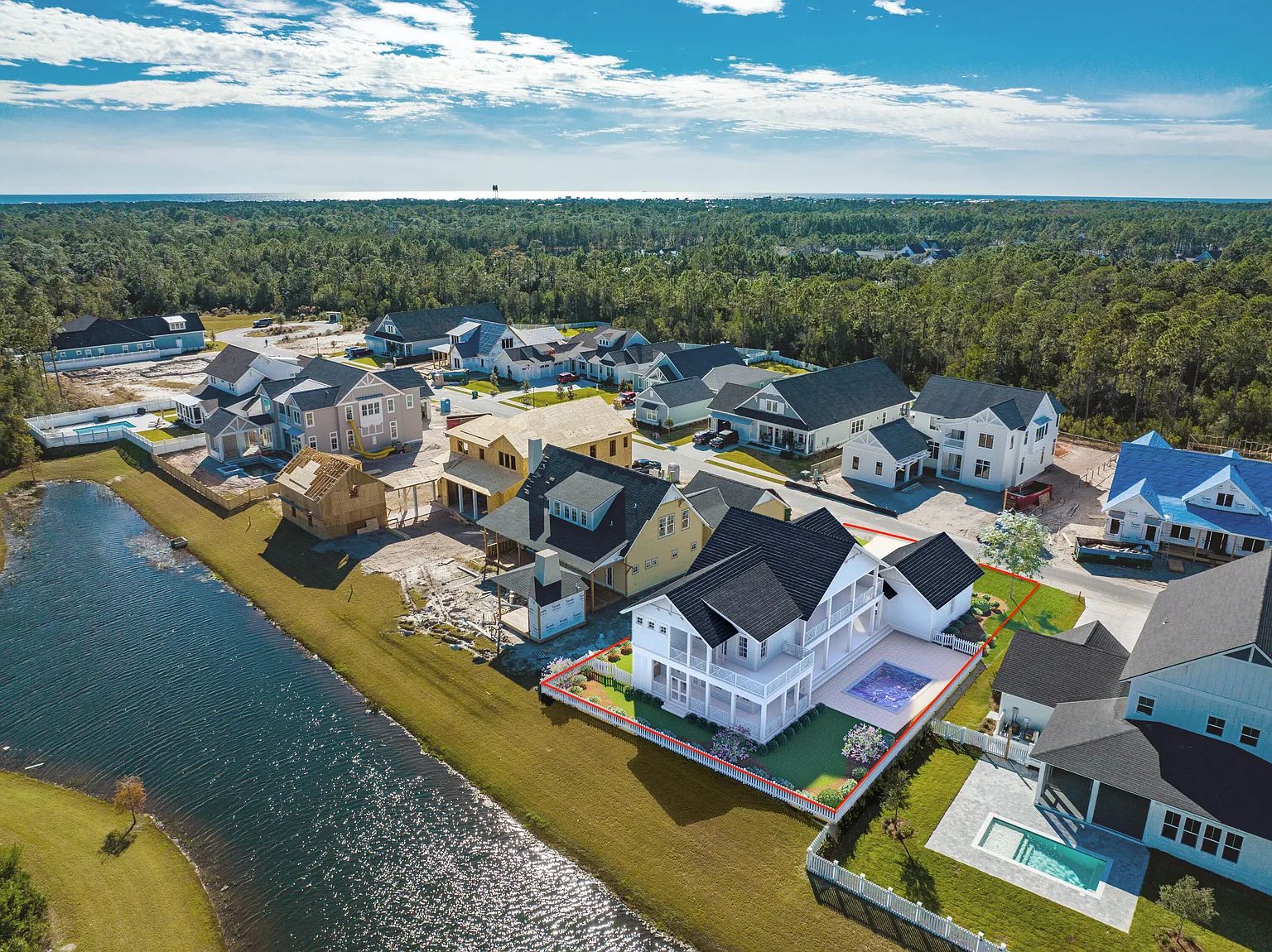 NEW CONSTRUCTION! 4 bedroom, 4.5 bathroom Custom Home in WaterSound Origins. Exquisitely located in one of the most highly desirable spots in WaterSound Origins. 3,293 sq. ft. heated and cooled with an ADDITIONAL 1,416 sq. ft. of covered outdoor living area featuring Cumaru decking! This upgraded home features 10 ft. ceilings throughout, hardwood floors throughout, open floor plan, professional grade stainless steel appliances and much more. On the first floor you're first greeted by the expansive living and dining areas off of the kitchen, a powder room and a full junior master suite. Throughout all bathrooms and kitchen area you'll find finishes from top names such as Thermador, Bosch and Grohe. On the second floor you'll find your master bedroom, overlooking the luxurious pool. Master bath comes equipped with a dual vanity, garden tub, a separate shower and an expansive walk-in closet. In addition, there are 2 guest bedrooms and 2 full bathrooms, an oversized loft area and a gorgeous outdoor balcony. The backyard will be undoubtedly be a show stopper. As you walk out from the dining area, you'll be transported to an oasis. Catch some rays in the pools tanning deck, then cool off in the pool, or relax in the spa! This home and its incredible features are ready for year round enjoyment. Watersound Origins homeowners are able to access the fitness center and seasonally heated community pool, as well as dock access at neighboring Lake Powell. Enjoy breakfast or lunch at the Watersound Cafe, located at the Village Commons. Watersound Origins also connects to the Panama City Beach Conservation Park via a 5-mile long trail. Watersound Origins offers plenty of options for the nature and beach lovers alike! Spend your days kayaking, paddle boarding, biking, running or walking along the Watersound trail. Located a short distance from Scenic Highway 30A there are endless dining, event and local shopping options and attractions. Owners in WaterSound Origins may also have the opportunity to join the St. Joe Beach Club featuring private beach access, beach services, 2 pools, 2 restaurants and a bar with gulf views along with 2 private Golf Courses, Camp Creek Golf Course and Sharks Tooth Golf Course. Please inquire with membership for more info and latest offerings.